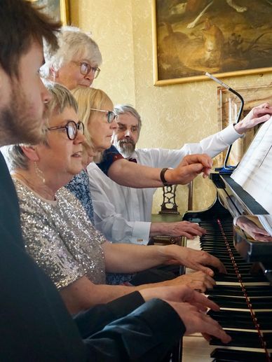 " Well! Another triumph. Every one of the Retreats I have attended (five now) has been an absolute delight. Someone might ask why you call them Retreats when there is so much activity and celebration, but the answer is clear: together, you really make it possible for participants to withdraw from the world for a short while and rest in the most productive way imaginable. As you will have seen, I always find it a wrench to tear myself away at the end of my time at Ardtornish. The public events were most enjoyable, as ever. Roxana and Anca's recital was wonderful. I especially enjoyed the audience participation in Gillian Craig's discussion of Janequin; I'm already looking forward eagerly to the Reunion and 2026 Retreat!"